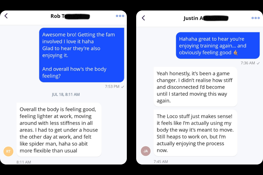 All training is delivered online via the Loco app. It's super convenient and easy to use - includes programs, video modules/feedback, messenger, goal setting/tracking, and access to the Loco community.